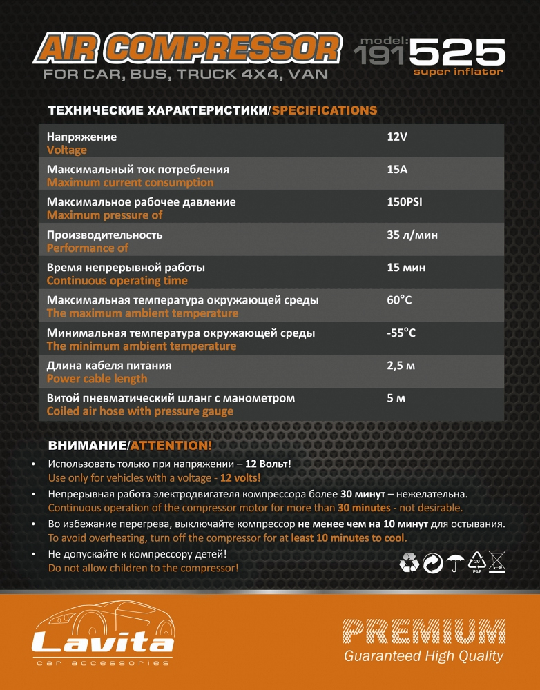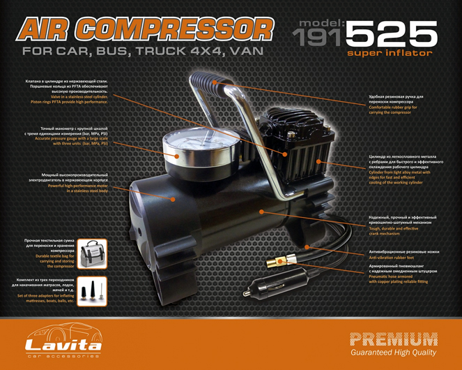 Компрессор автомобильный LAVITA 35л/мин Премиум