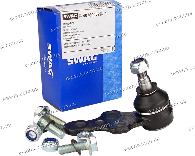 Шаровая опора Ланос SWAG 40780002. Оригинальный номер шаровой опоры (шарового пальца, шарового шарнира, нижней опоры) по каталогу — 94788122. Шаровая опора SWAG предназначена для установки на ДЭУ Сенс, Ланос, Нексия, Эсперо.